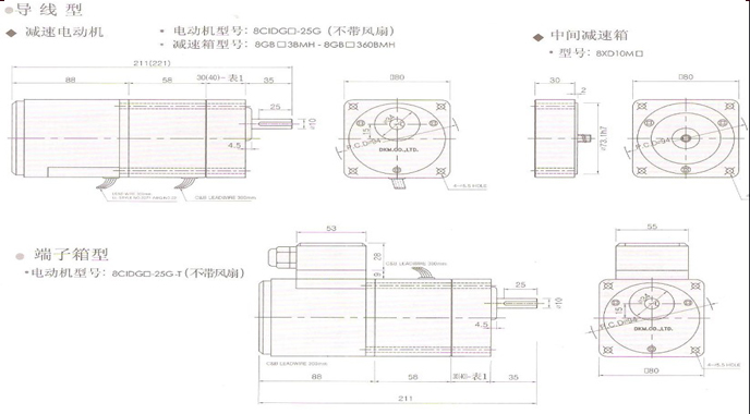 3、丰富的型号:截面尺寸范围由42mm(1W)至90mm(90W),马达的种率也有感应式、可逆式、三相、变速及附带电磁制动器马达等型号丰富的机种。