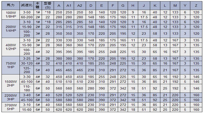 城邦二代立式(标准/缩框)三相齿轮减速马达详细参数: